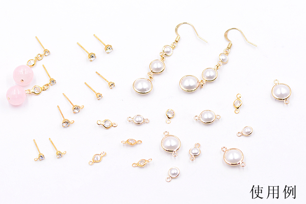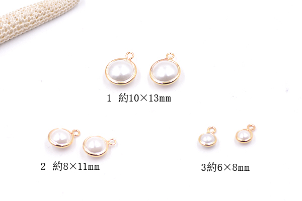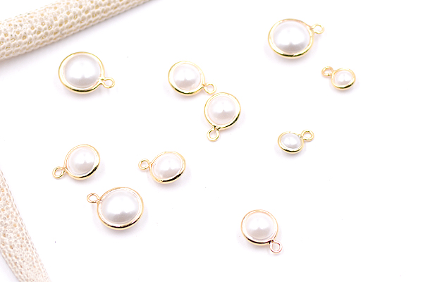 チャームパーツ ラウンド パール付 1カン 3サイズ ゴールド