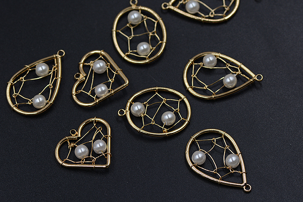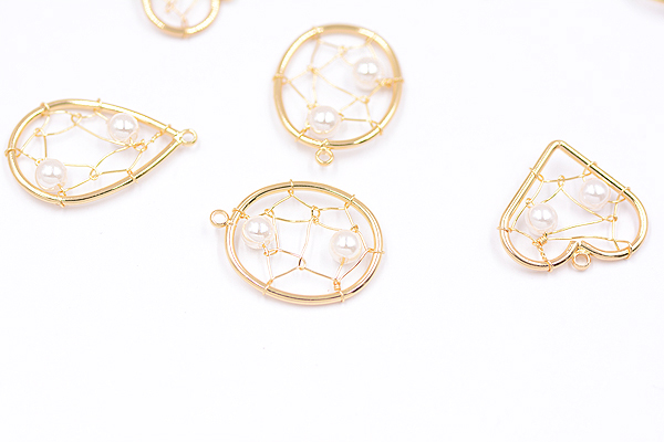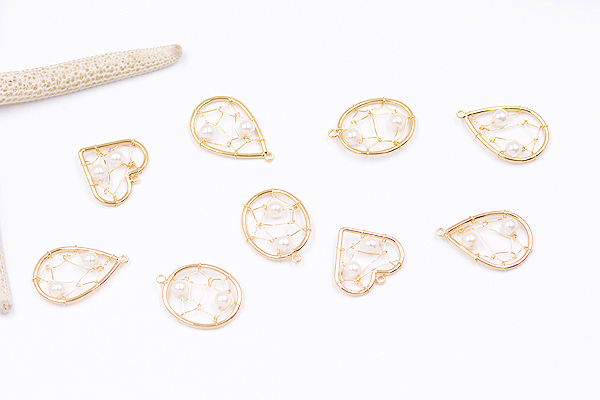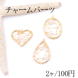 チャームパーツ ハート&雫&オーバル パール付 ゴールド【2ヶ】