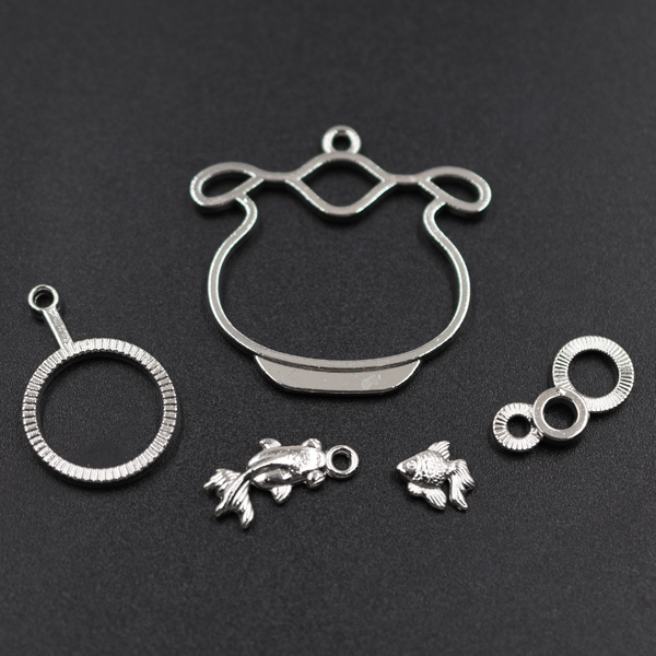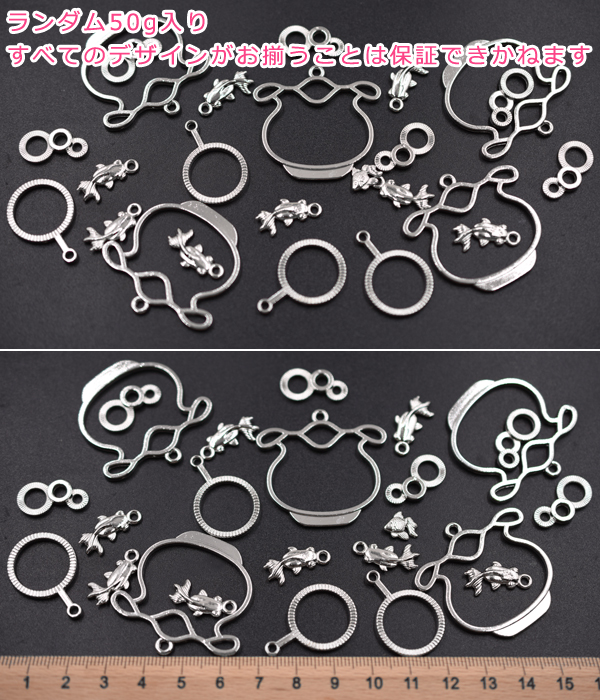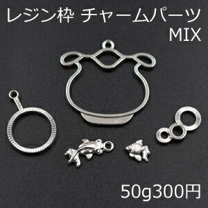 レジン枠 チャームパーツミックス MIX 魚 金魚鉢 泡【50g】ロジウム