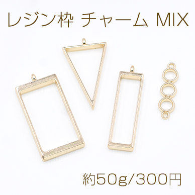 レジン枠 チャーム ミックス MIX 三角 長方形(大、小)3連丸【約50g】ゴールド