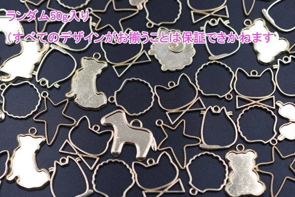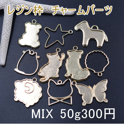 レジン枠 チャームパーツミックス MIX クマ ヒトデ 蝶々 馬 猫 羊【50g】ゴールド