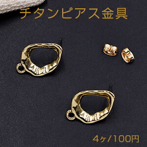 チタンピアス金具 抜き不規則 カン付き 14×22mm ゴールド【4ヶ】