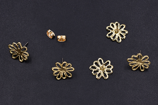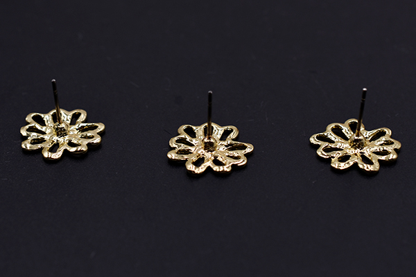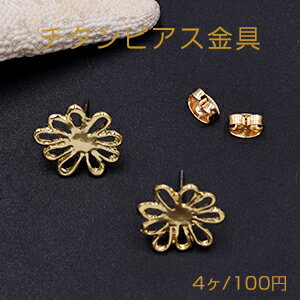 チタンピアス金具 フラワー 14×15mm ゴールド【4ヶ】