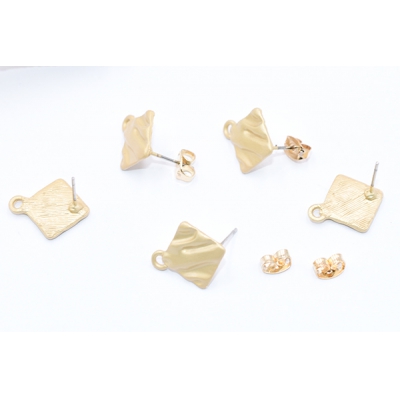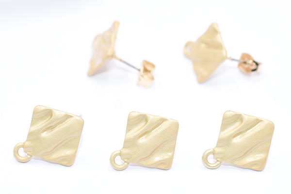 チタンピアス金具 菱形 カン付き 12×16mm マットゴールド【4ヶ】