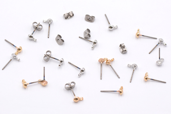 丸玉サイズ:約4mm 入数:25ペア/パック ピアスのポストとキャッチのみチタン素材を使用しています。