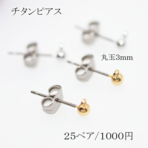 丸玉サイズ:約3mm 入数:25ペア/パック ピアスのポストとキャッチのみチタン素材を使用しています。