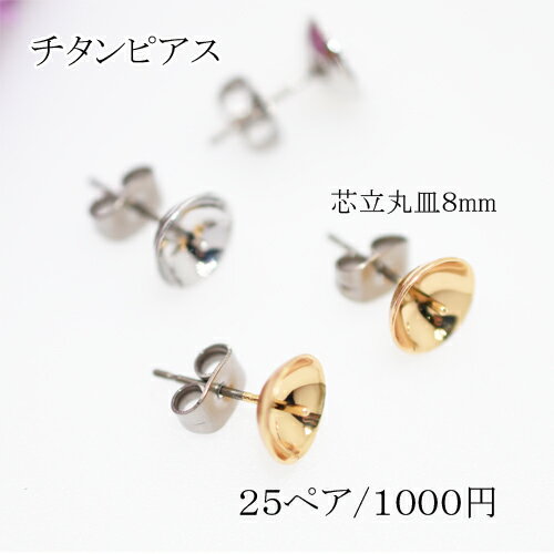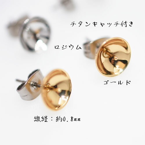 皿サイズ:約8mm 線経:約0.8mm 入数:25ペア/パック ピアスのポストとキャッチのみチタン素材を使用しています