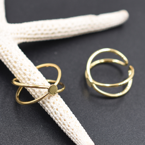 リング台 ダブルクロス 丸皿付4mm【10ヶ】ゴールド