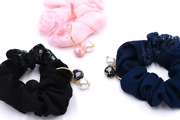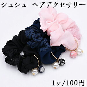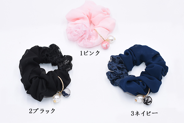 シュシュ パールチャームNo.6 ヘアアクセサリー 全3色【1ヶ】