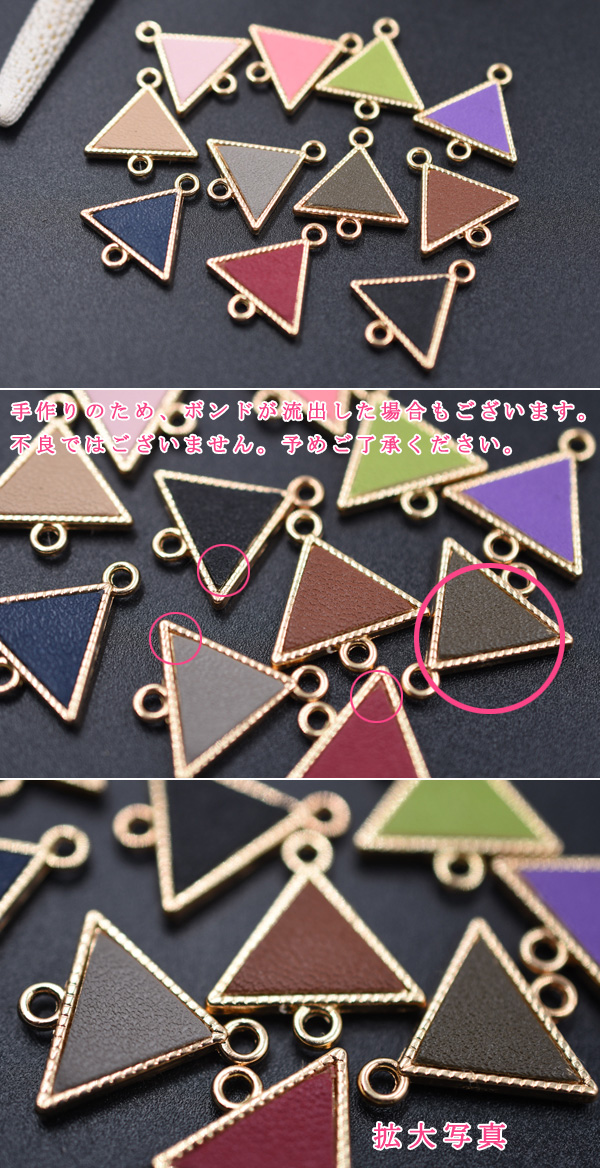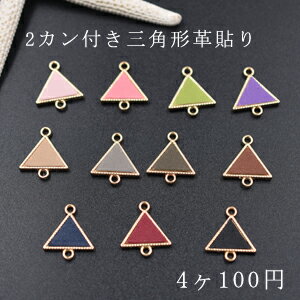 チェーンパーツ チャームパーツ模様入り 2カン付き 三角形革貼り