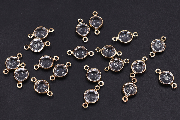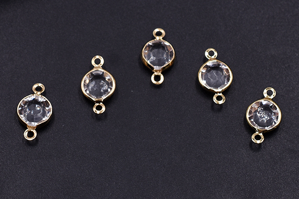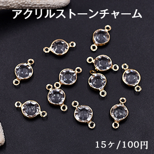 アクリルストーンチャーム ラウンド 2カン 9×15mm ゴールド/クリア【15ヶ】