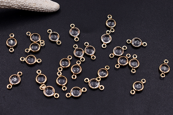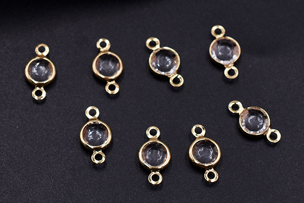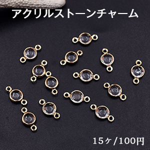 アクリルストーンチャーム ラウンド 2カン 7×13mm ゴールド/クリア【15ヶ】