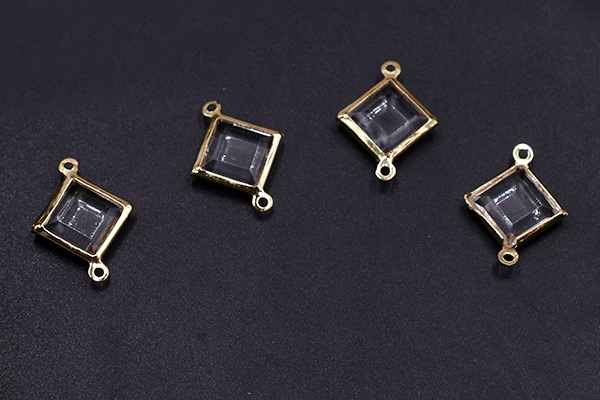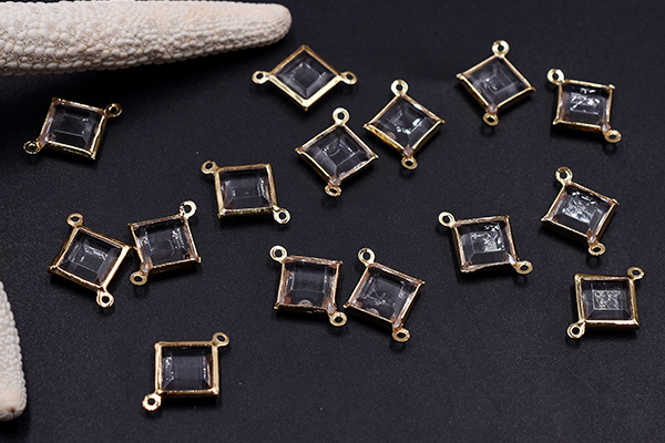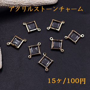 アクリルストーンチャーム 菱形 2カン 13×17mm ゴールド/クリア【15ヶ】