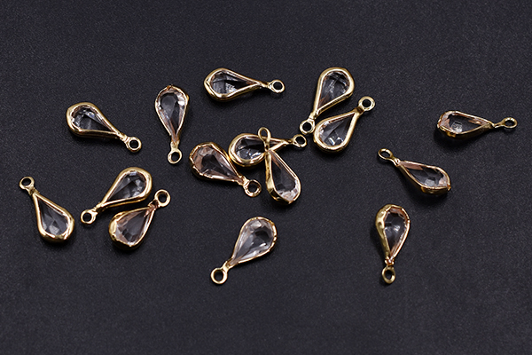 アクリルストーンチャーム 雫 1カン 6×14mm ゴールド/クリア【15ヶ】