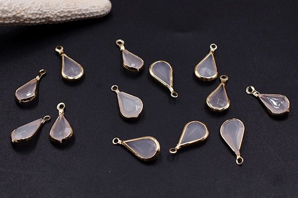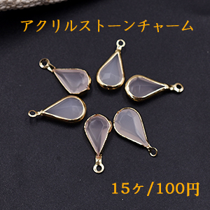 アクリルストーンチャーム 雫 1カン 6×14mm ゴールド/ホワイト【15ヶ】