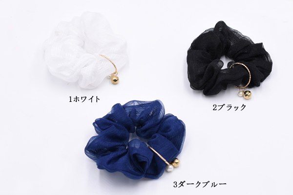 シュシュ パールチャームNo.1 ヘアアクセサリー 全7色【1ヶ】