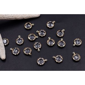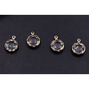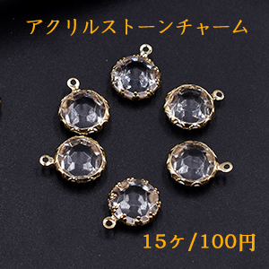 アクリルストーンチャーム ラウンド 1カン 11×14mm ゴールド/クリア【15ヶ】