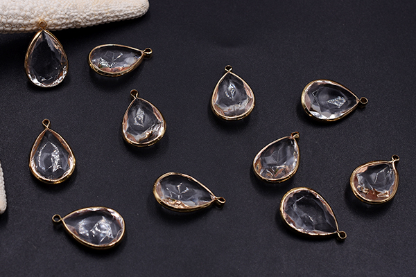 アクリルストーンチャーム 雫 1カン 14×22mm ゴールド/クリア【10ヶ】