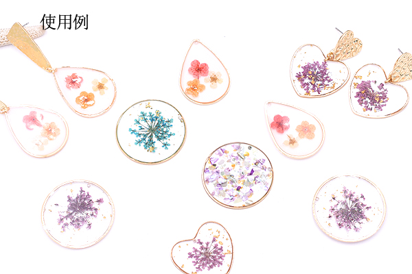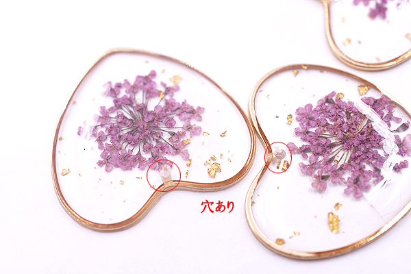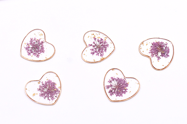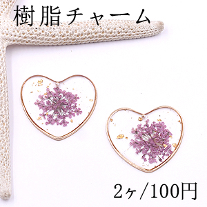 樹脂チャーム ハート 24×26mm 1穴 クリア ドライフラワーと金箔入り【2ヶ】