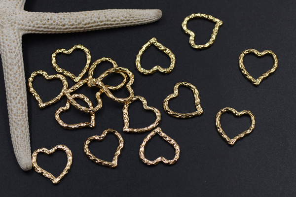メタルパーツ 模様入りハート 15×15mm ゴールド【10ヶ】