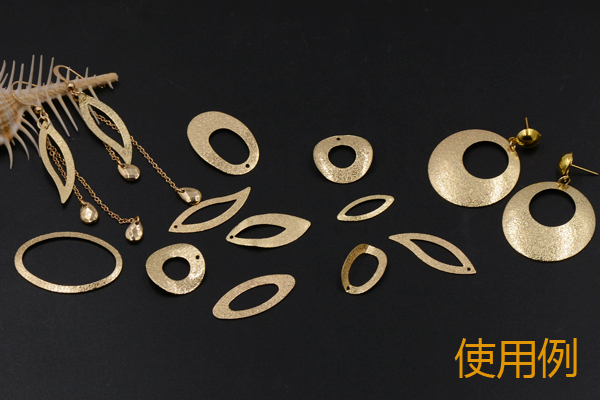 メタルパーツ プレート スクラブ 抜きオーバル 1穴 28×40mm ゴールド【10ヶ】