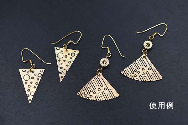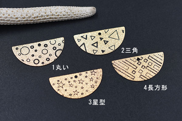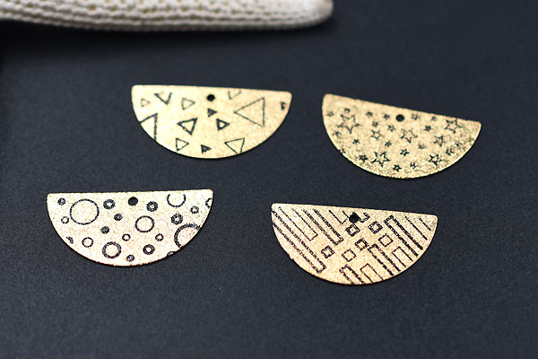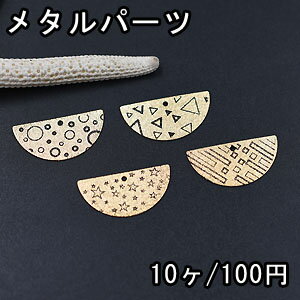 メタルパーツ メタルプレート 幾何学柄 スクラブ 半円 1穴 ゴールド【10ヶ】