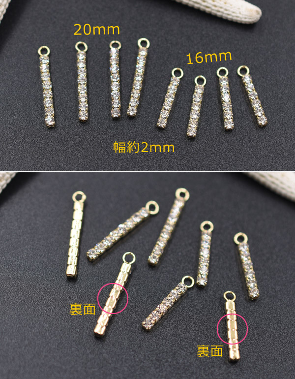 メタルパーツ ラインストーンバー カン付 ゴールド【2ヶ】