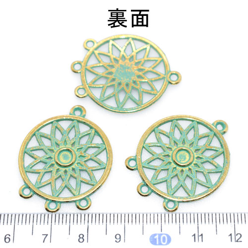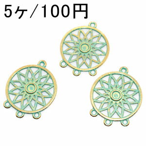 【5個】アンティーク調 メタルチャーム 透かし4カン付丸 アンティークグリーン