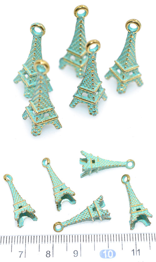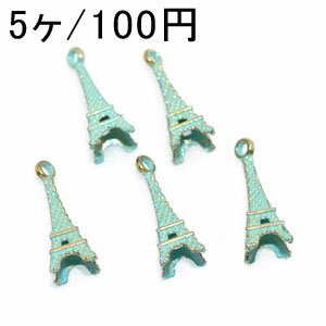 【5個】アンティーク調 メタルチャーム エッフェル塔 アンティークグリーン
