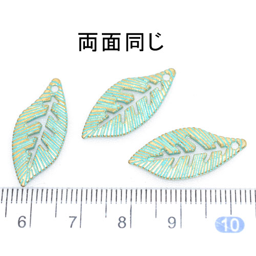 【5個】アンティーク調 メタルチャーム リーフ2 葉 アンティークグリーン
