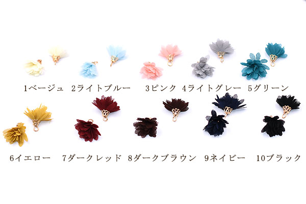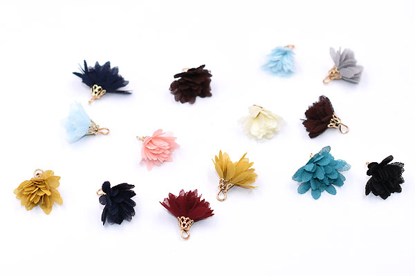 タッセルチャーム ガーゼお花 金具付 No.4【10ヶ】