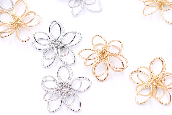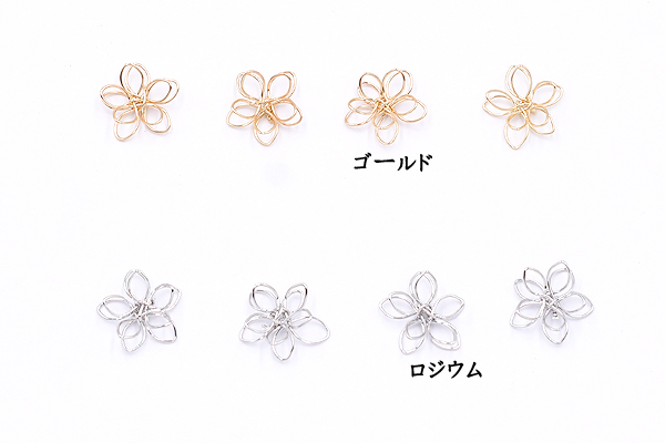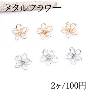 メタルフラワー 五弁花 14×15mm フラワーワイヤーチャーム お花の立体ワイヤーチャーム フラワーワイヤーパーツ チャームパーツ【2ヶ】
