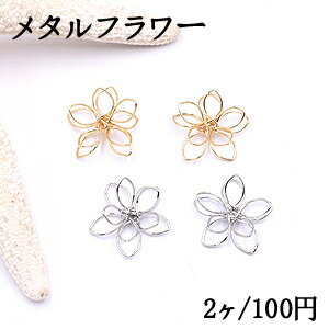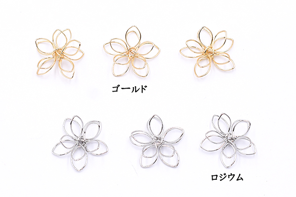 メタルフラワー 五弁花 18×19mm フラワーワイヤーチャーム お花の立体ワイヤーチャーム フラワーワイヤーパーツ チャームパーツ【2ヶ】
