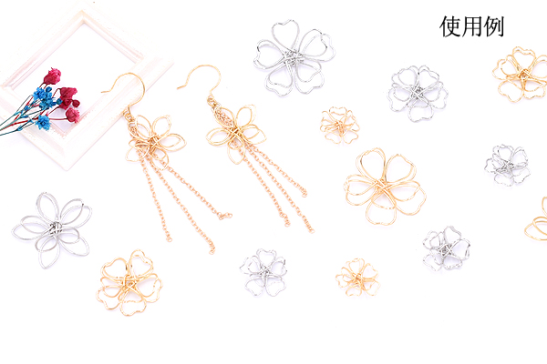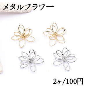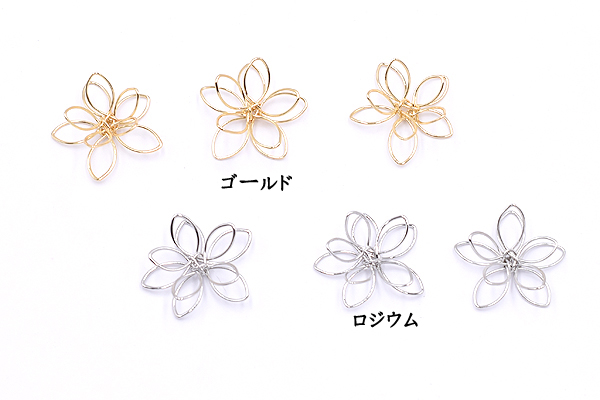メタルフラワー 五弁花 23×24mm フラワーワイヤーチャーム お花の立体ワイヤーチャーム フラワーワイヤーパーツ チャームパーツ【2ヶ】