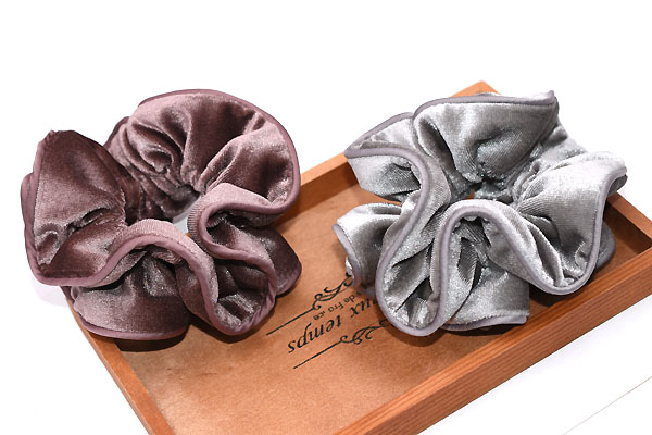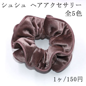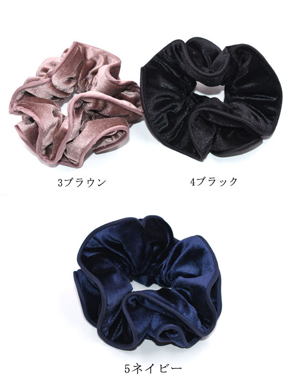 シュシュ フリル ヘアアクセサリー ベロア調 全5色【1ヶ】