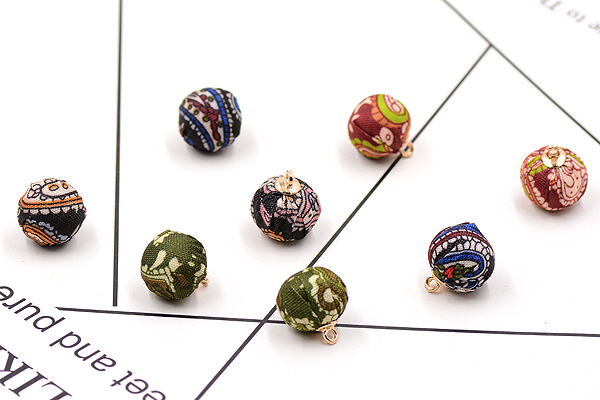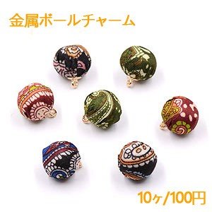 金属ボールチャーム 14×17mm 布付き 花柄【10ヶ】