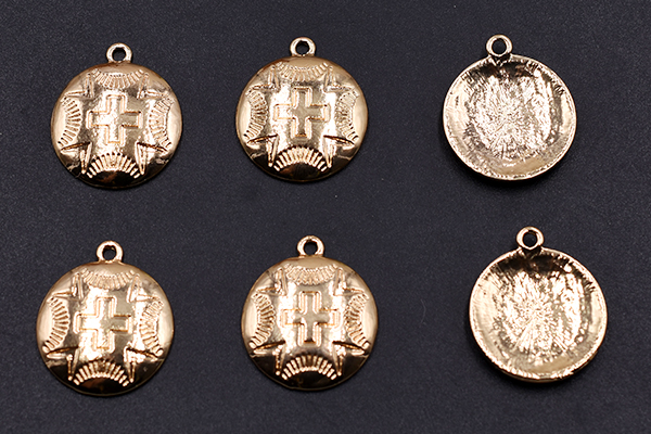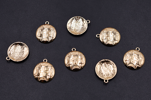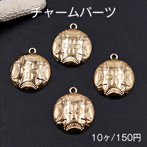 チャームパーツ ラウンド クロス付き 20×24mm ゴールド【10ヶ】
