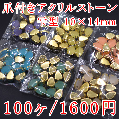 爪付きアクリルストーン 雫型 10×14mm 単色/100ヶ入り