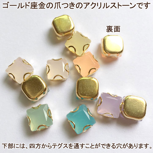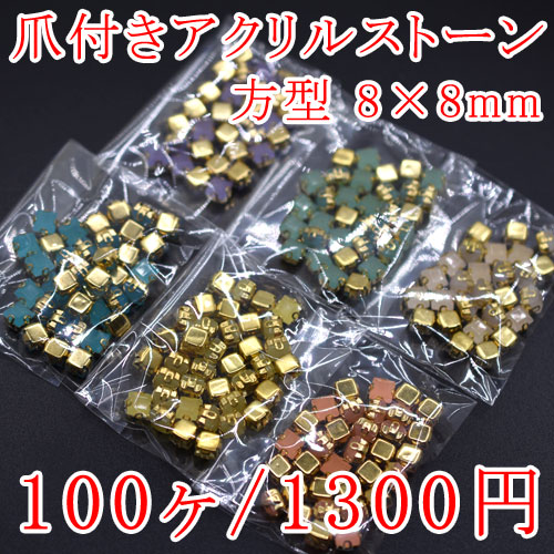 爪付きアクリルストーン 方型 8×8mm 単色/100ヶ入り
