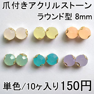 爪付きアクリルストーン ラウンド型 8mm 単色/10ヶ入り