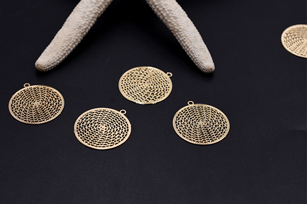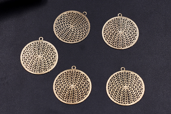高品質透かしチャーム ラウンド 24×26mm ゴールド【2ヶ】