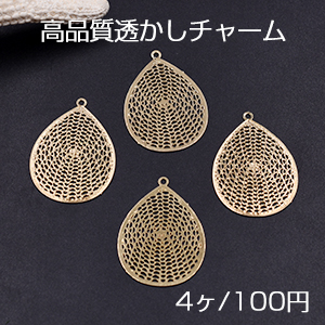 高品質透かしチャーム 雫 23×31mm ゴールド【4ヶ】
