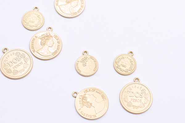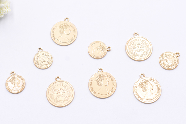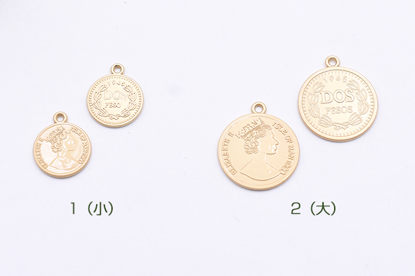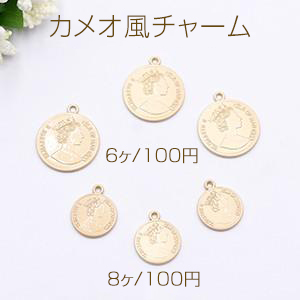 カメオ風チャーム コイン 硬貨 ポートレート 人物 マットゴールド カン付き サイズ2種