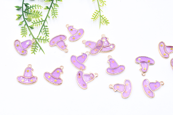 エポチャーム ハロウィン 魔女の帽子 19×21mm ゴールド/パープル【10ヶ】