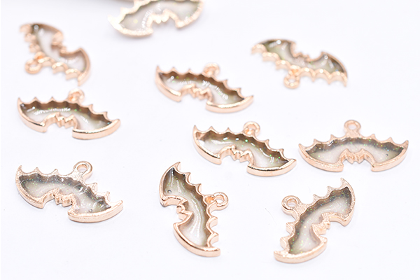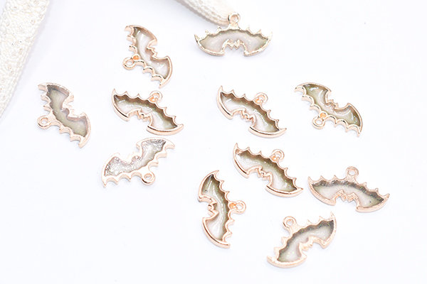 エポチャーム ハロウィン こうもり 13×24mm ゴールド/グレー【10ヶ】