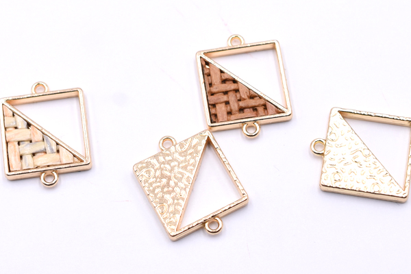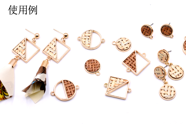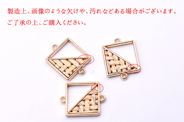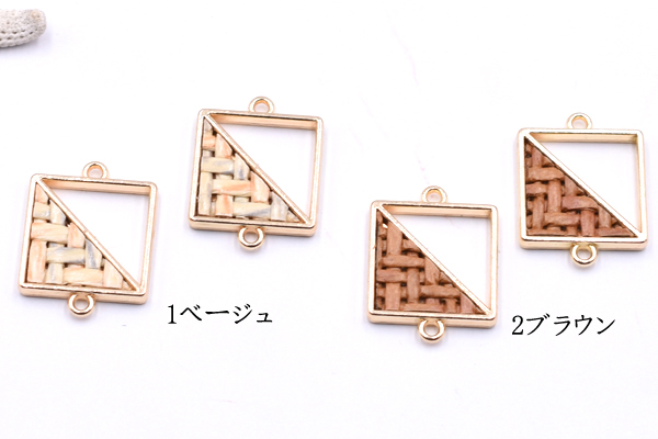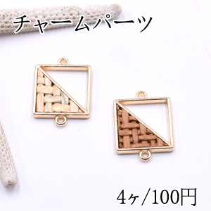 チャームパーツ 正方形 ラタン貼り 2カン 19×25mm【4ヶ】