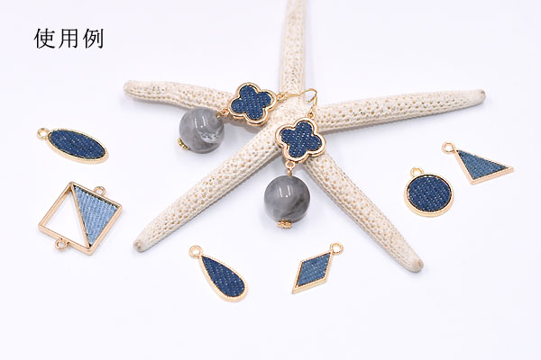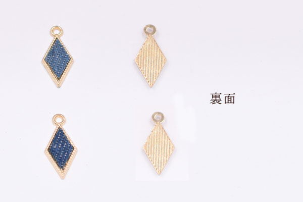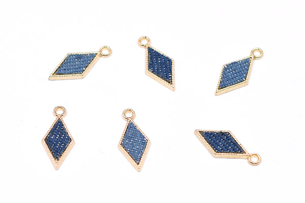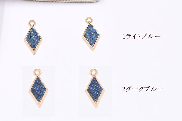 チャームパーツ模様入り カン付き 菱形 デニム貼り【10ヶ】