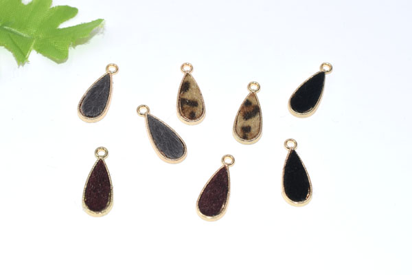 チャームパーツ ふわふわファー付き金属チャーム 雫1カン【10ヶ】