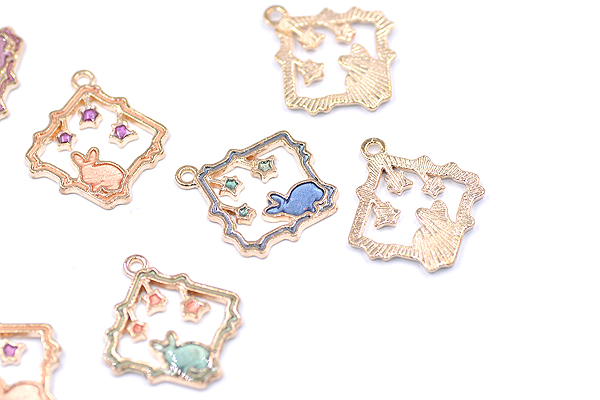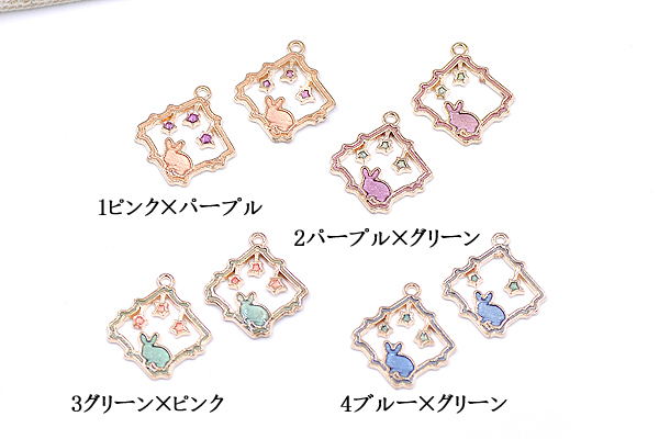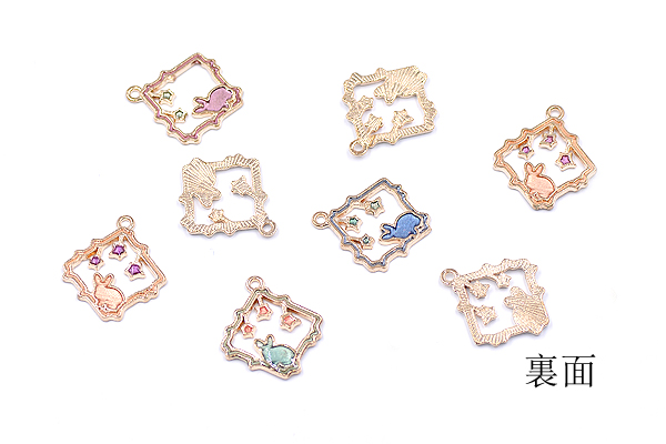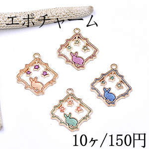 エポチャーム 四角フレーム 兎と星付き 20×24mm ゴールド【10ヶ】