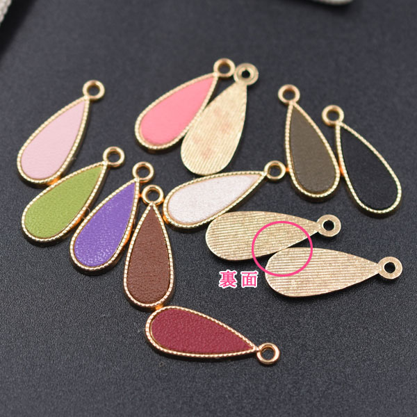 チャームパーツ模様入り しずく革貼り【10ヶ】